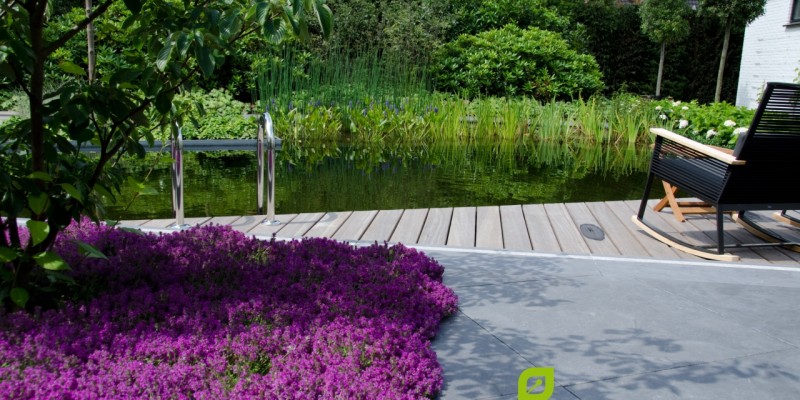 Wij vinden het belangrijk om strakke, heldere lijnen en duidelijke vlakken te benadrukken. Één van de herkenbare basiselementen bij projecten van detuinenvanbosch is daarom het gebruik van grote tegels. Deze hebben wij gecombineerd met een hardhouten vlonder en gebakken klinkers van hoge kwaliteit. Een belangrijk en ecologisch punt waar hierbij rekening is gehouden, is de goede afwatering van hemelwater.
